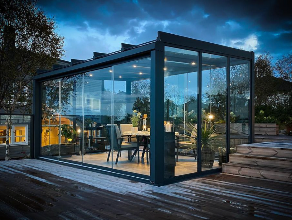 A Glass Outdoor Room offers a serene retreat for relaxation, entertaining, or as a seamless extension of your home and garden throughout the majority of the year. It functions as a shelter during summer or autumn rains, a sunshade during midday, and a focal point for your garden furniture, shielded from the elements.