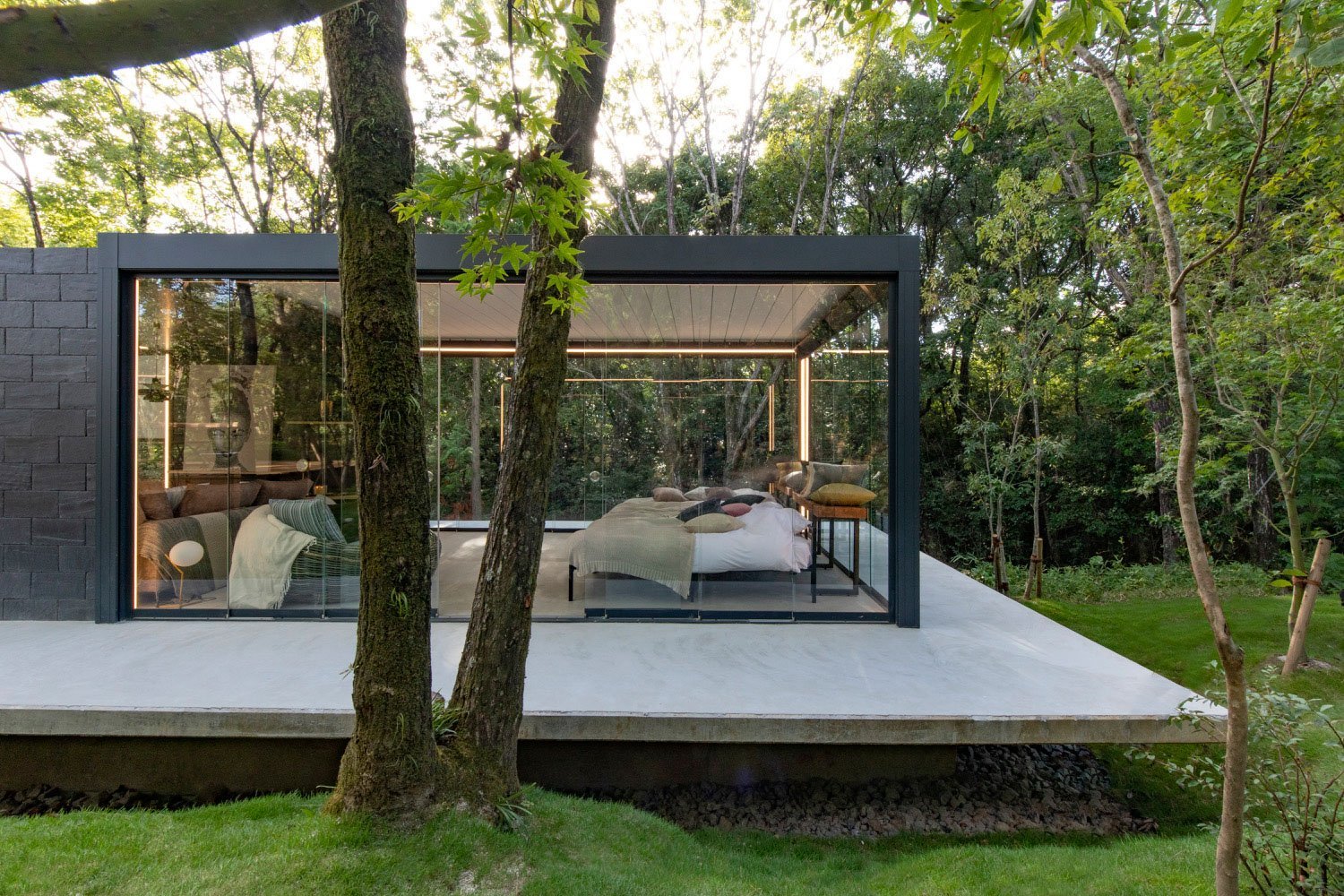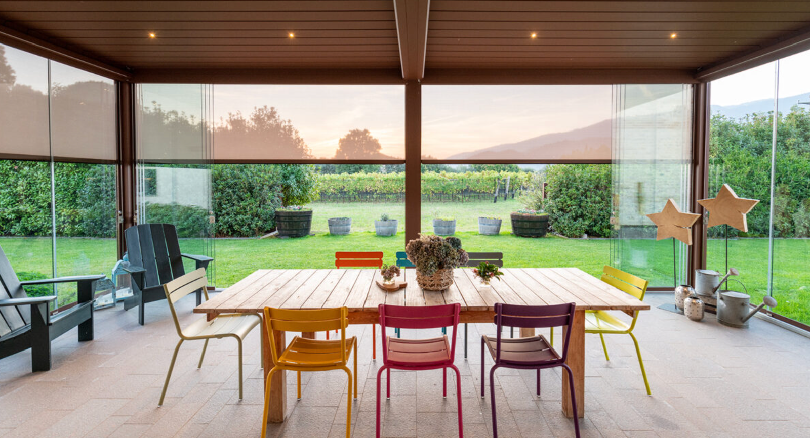 We provide a range of different shading options for our glass houses, along with LED lighting around the perimeter or framing.